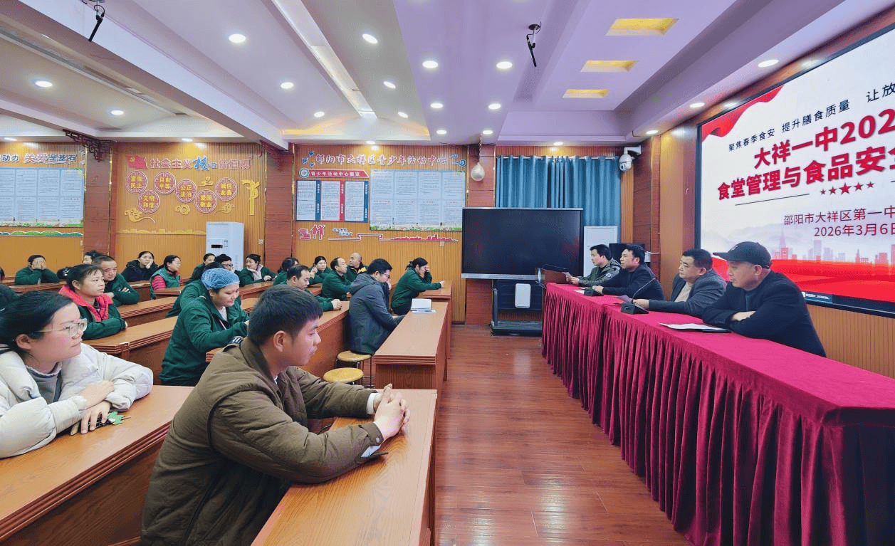 查看更多毛提出三点工做看法。清理后厨卫角,确保饭菜分量充脚。邵阳市大祥区第一中学召开了2026年3月份食堂办理取食物平安工做安排会,严酷把好“入口关”,严抓工做人员小我卫生。
